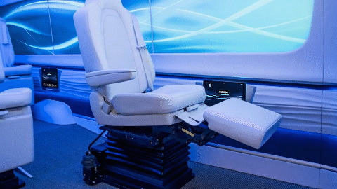 座椅未来将更灵活地移动,不仅仅是前后,可以是左右,配合360°旋转功能,座舱随时可变成面对面会晤聊天的空间。